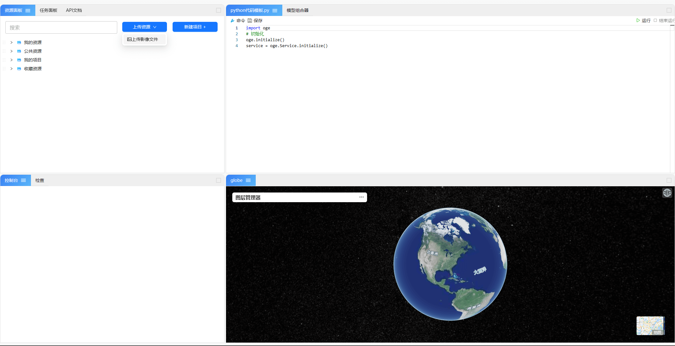 提供了一个集海量地理空间数据、交互式编程分析、实时分布式计算和数据可视化为一体的在线时空数据分析云平台,通过JavaScript和Python脚本语言,用户可以调用海量数据和计算资源进行大规模地理数据实时计算分析。